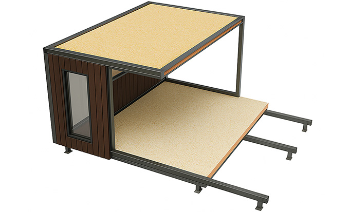 Nos habitations sont conçues avec une toiture plate. L’étanchéité et l’isolation sont assurées par une plaque en acier anti-corrosion montée sur l’isolant. Une solution performante, résistante aux UV, aux fortes pluies ainsi qu’à la grêle, du point de vue thermique et acoustique.