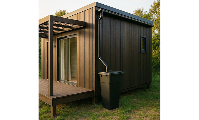 Équipez votre lodge d’un système de récupération d’eau de pluie grâce à des gouttières afin d’être 100% autonome.